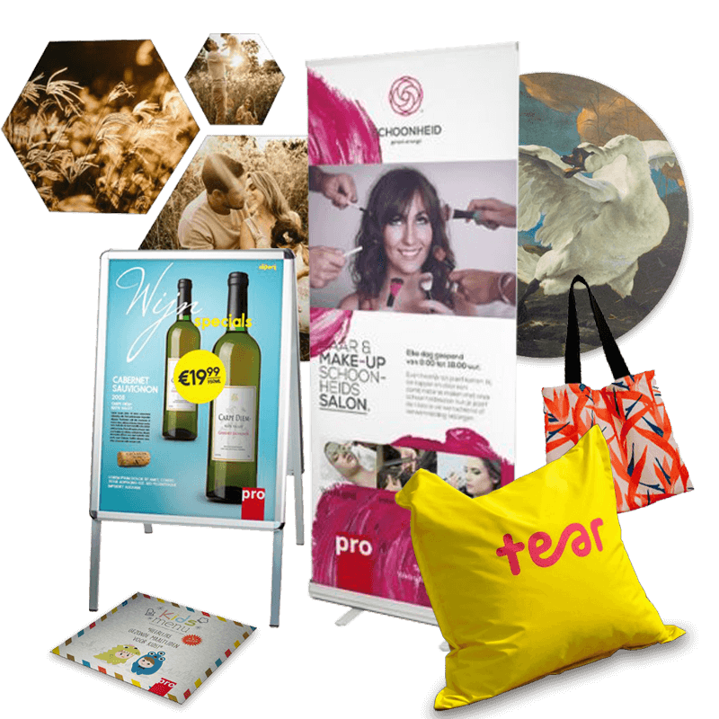Oneindig veel keuzes, van standaard producten tot maatwerk. Al het drukwerk wat je nodig hebt voor jouw bedrijf of organisatie, onder 1 dak. Van binnen- tot buitenreclame, voor beurzen/evenementen tot kantoorbekleding, bij ons vind je alles. Als het er niet tussen staat, neem gerust contact met ons op en komen we altijd met een oplossing!
