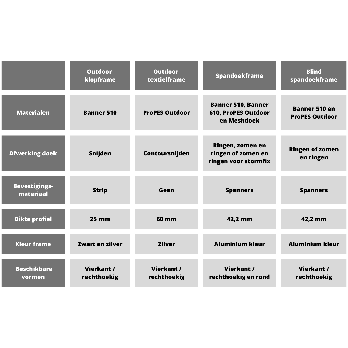 De gewenste uitstraling of benodigde materiaal voor jouw product heeft invloed op jouw keuze voor een frame. Dit is wat je moet weten: