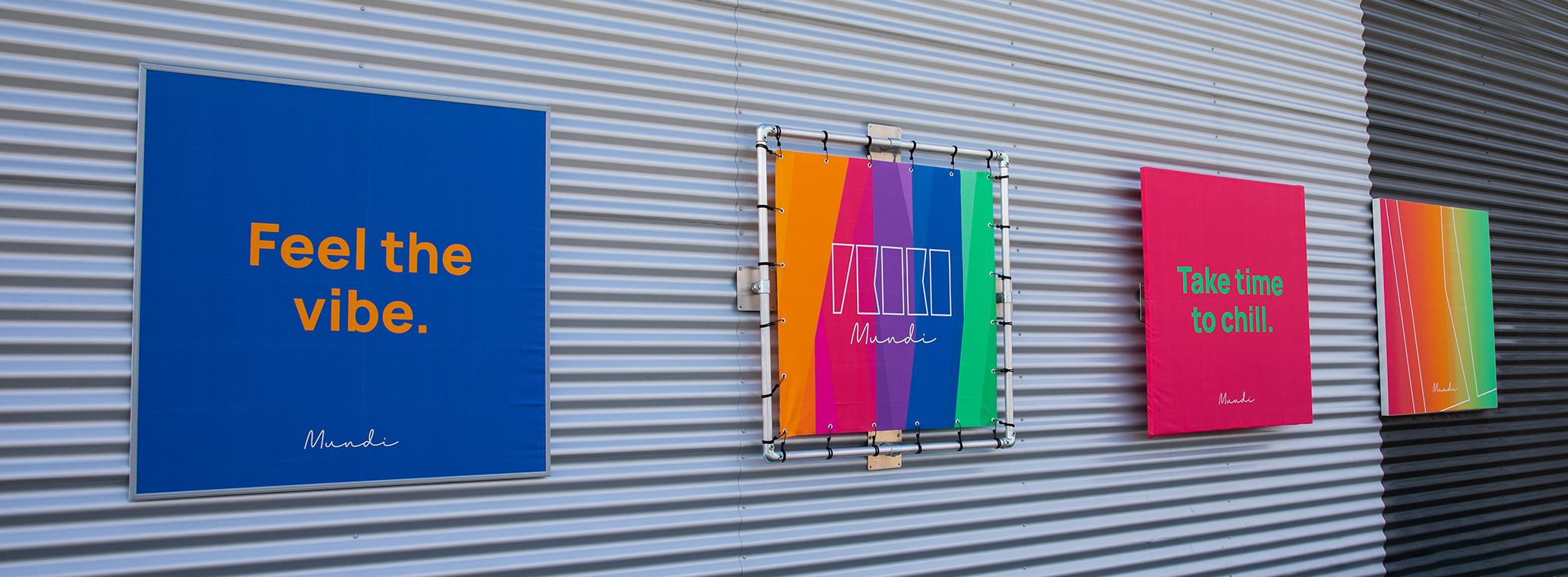 Blinde spandoekframes combineren de strakke uitstraling van een reclamebord met de flexibiliteit van een spandoek. Bij dit type frame is het doek strak om de buitenkant van het frame gespannen en zijn de aluminium buizen en spanners slim weggewerkt.