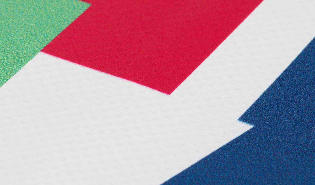 Alle drie Flag-materialen zijn transparant. Daardoor is de print op achterkant in spiegelbeeld zichtbaar. Bij Flag Longlife komt 95% van de inkt terug aan de achterkant. Bij Flag en Flag PET is dit zelfs 98%, dat betekent dat je op zowel de voor- als achterkant bijna identieke kleuren hebt.