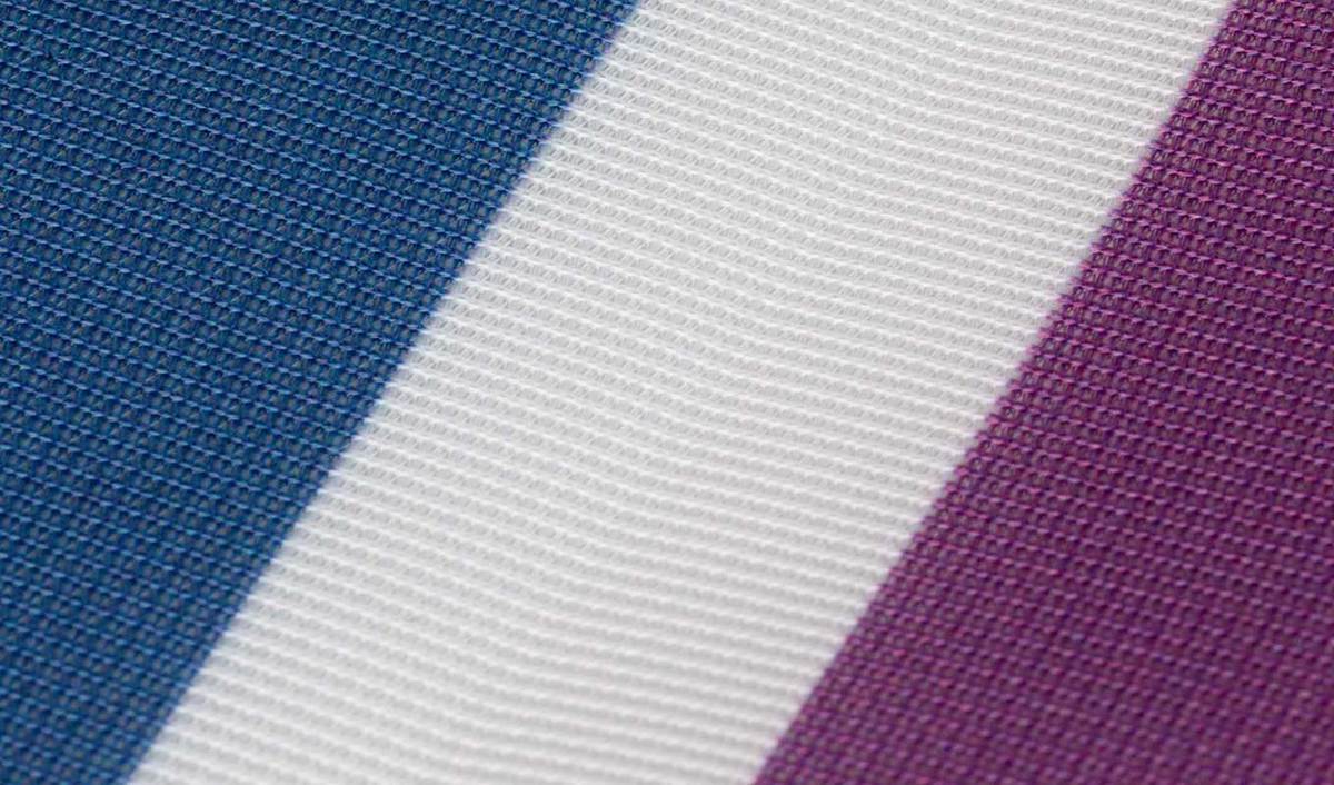 Flag en Flag PET hebben dezelfde uitstraling. Beide zijn transparante polyester doeksoorten met een fijne structuur en licht glanzende uitstraling. Met een zoom voorkom je dat de stof rafelt en vergroot je de kwaliteit en levensduur van de vlag. Flag Longlife heeft een grove structuur waardoor dit extra sterke polyester doek langer mee gaat.