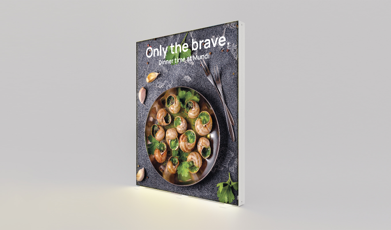 Samba heeft een natuurlijke textiellook en een dubbele laag inkt. Door de combinatie van de hoge kleurintensiteit van de print en de verlichting van het frame, krijgt de print alle aandacht. Naast de 200% full color print is het doek voorzien van een vuil- en waterafstotende toplaag. Zo blijft vuil en water niet plakken, maar rolt het juist van het doek af. Dat maakt het doek ook erg geschikt voor buiten dus! Houd wel rekening met een tijdelijke sterke geur door de print met UV-inkten.