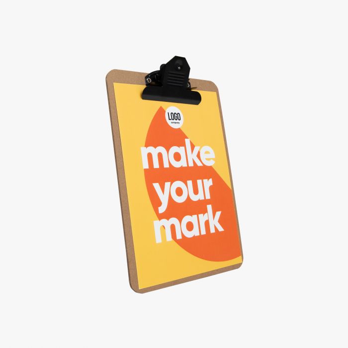 Het klembord heeft afgeronde hoeken en is gemaakt van het materiaal MDF. Door het materiaal krijgt het klembord een natuurlijke uitstraling. De dikte van de MDF plaat is 3 mm.