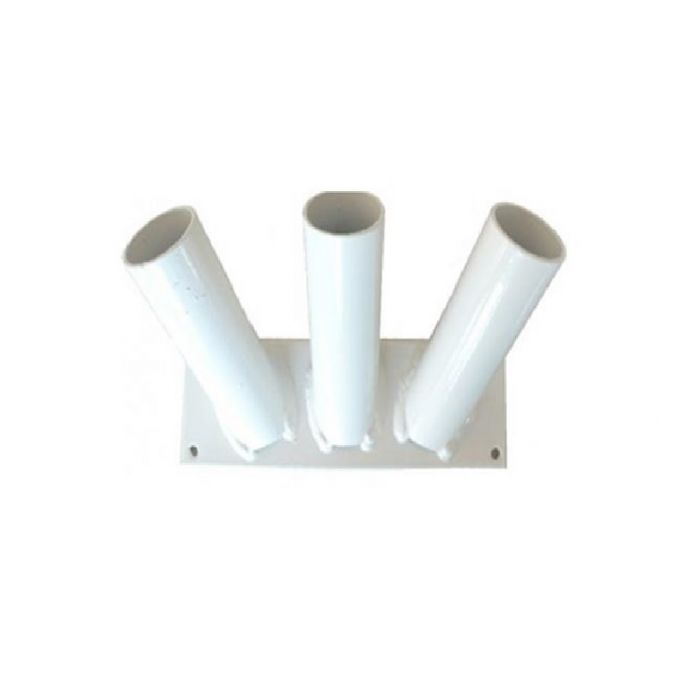 Deze drieling vlaggenstokhouder wordt bevestigd aan de gevel of buitenmuur. De houder is gemaakt van aluminium en door de poedercoating zijn ze bestand tegen weer en wind.