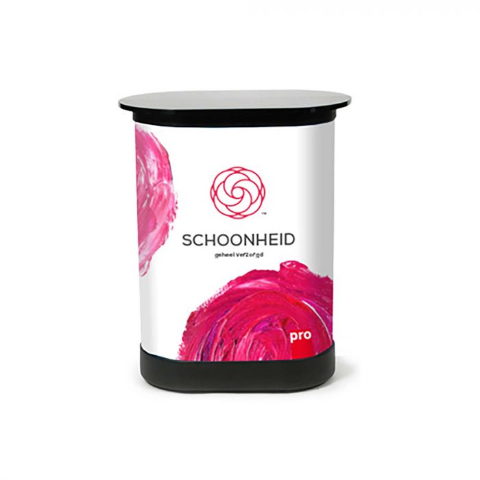Om alle onderdelen eenvoudig te kunnen vervoeren, krijg je bij de Gebogen pop-up wand een handige koffer op wielen. Deze koffer bevat jouw complete stand! Optioneel kun je de koffer laten voorzien van een Kofferprint waarmee je deze transformeert tot promotionele Beurs balie. Je kunt ook het bijbehorende Topblad eenvoudig bijbestellen.