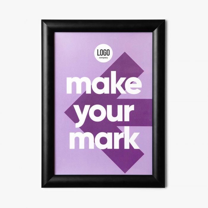 De kliklijst is hét perfecte product om de poster van jouw klant net dat beetje extra te geven. De kliklijst is beschikbaar in A4 formaat en heeft een 25 mm breed frame. Dit geeft de kliklijst een stijlvolle en professionele uitstraling. De kliklijst heeft een transparante voorzetfolie die de poster beschermt tegen vuil en vocht. Je kan de kliklijsten in zwart en zilver bestellen.