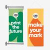 Banieren zijn langwerpige doeken die van boven tot onder opvallen en een stijlvolle uiting van een boodschap of merk zijn. Kies uit de binnenbanier of de gevelbanier en maak deze zo lang als je wilt. Dankzij het B1-certificaat hangt de banier op elke plek veilig.