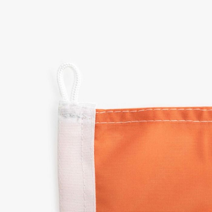 Een gevelvlag is een rechthoekige vlag, verkrijgbaar in vier verschillende formaten. Daarnaast bieden we een afwerking met band en koord. Je bepaalt zelf of je deze afwerking aan de linker- of de rechterzijde van de gevelvlag wilt hebben.