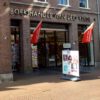 De kioskvlag is een voordelige manier om aandacht te trekken. Niet te missen in de winkelstraat.