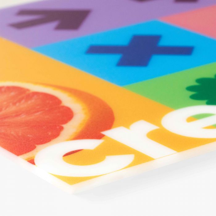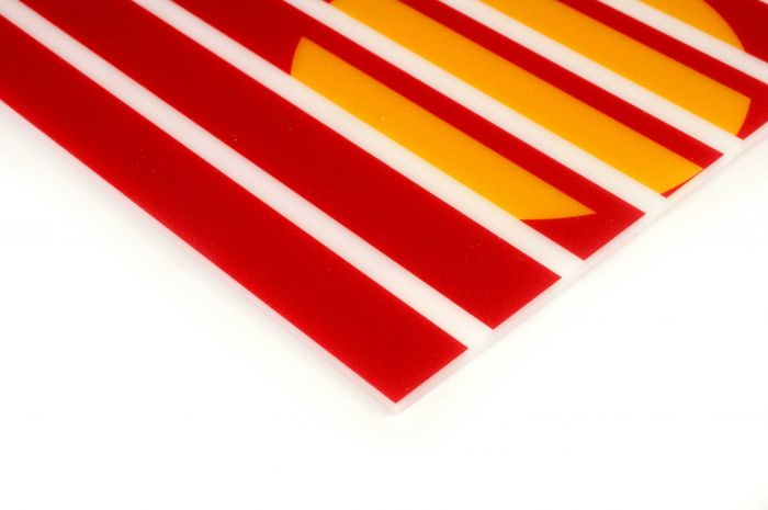 Het materiaal is freesbaar in bijna iedere vorm. Jouw print wordt direct op het acrylaat aan de achterzijde geprint. Op die manier komt de print door het paneel heen en zo creëer je een luxere uitstraling.