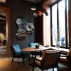 Hexagon met eigen print en hoge geluidsabsorptie.