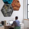 Creëer een unieke en gepersonaliseerde uitstraling met AcousticPro® hexagons. Dit is een razend populair zeshoekig paneel met daarop een eigen foto, print of patroon. Wat onze AcousticPro® hexagon zo uniek maakt? De geluiddempende eigenschap waardoor de panelen de akoestiek in de ruimte verbeterd. Ideaal voor in het interieur van een kantoor, kantine of bij je thuis.