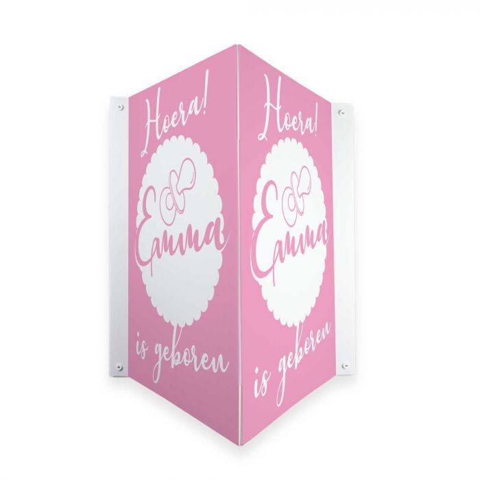 Hoera, een baby geboren! Laat het iedereen weten met een gepersonaliseerd geboortebord. Deze is weersbestending en bevestig je eenvoudig op ramen of andere gladde ondergronden met dubbelzijdige tape of zuignappen.