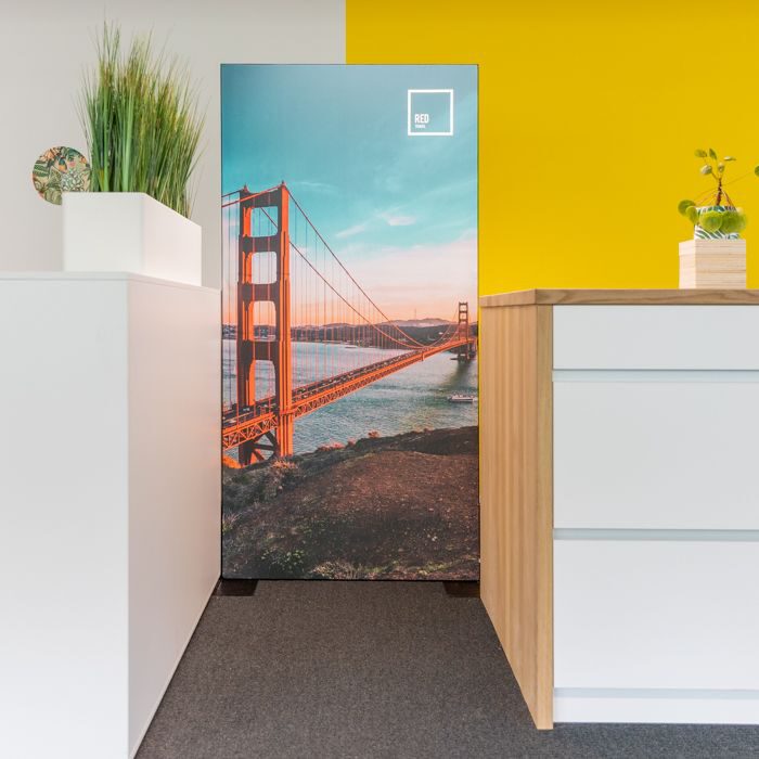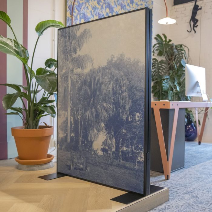 Deel een ruimte in met roomdividers of scherm een werkplek af met een scheidingswand tussen bureaus (deskdivider). Het geluid blijft in de afgeschermde ruimte en wordt aangenaam gedempt. Niet alleen functioneel dus, maar ook nog eens bevorderend voor de productiviteit. Je bent extra onderscheidend met een gepersonaliseerde print aan beide zijden.