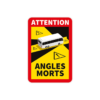 De stickers hebben een formaat van 17 x 25 cm en zijn voorzien van een vaste print met daarop de tekst: Attention en Angles Morts.
