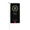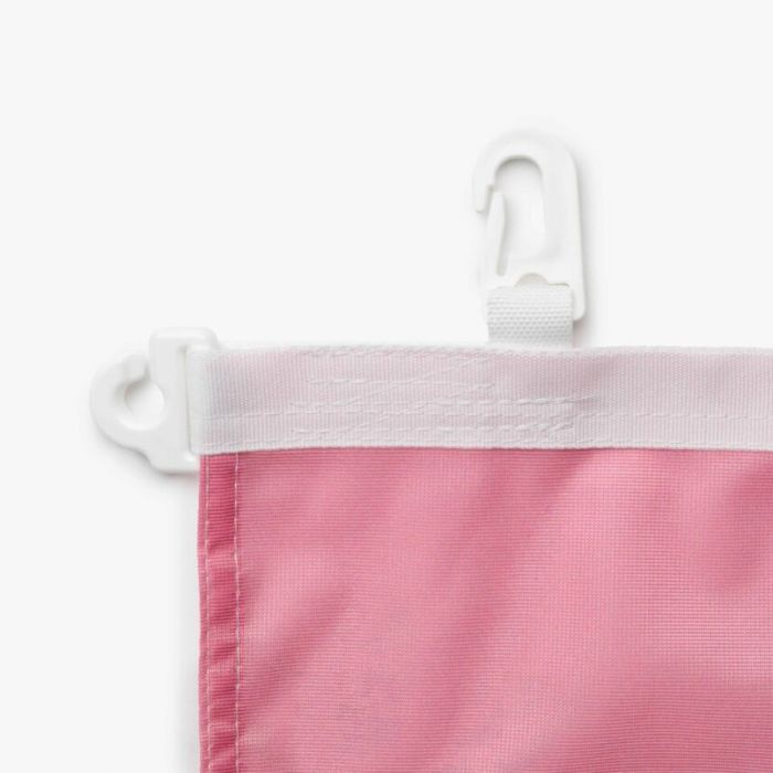 We werken de baniervlag af met een witte of zwarte band en haken in dezelfde kleur. Daarnaast bieden we de keuze tussen een afwerking zonder tunnel of met een tunnel boven. Je bepaalt zelf of deze afwerking aan de linker- of de rechterzijde komt.