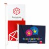 Het materiaal Flag is de universele stof voor bedrukte vlaggen. Flag PET is een duurzaam alternatief, gemaakt van 100% gerecyclede petflessen. Longlife is een extra sterke vlaggenstof dat dankzij een speciale structuur minder snel rafelt.